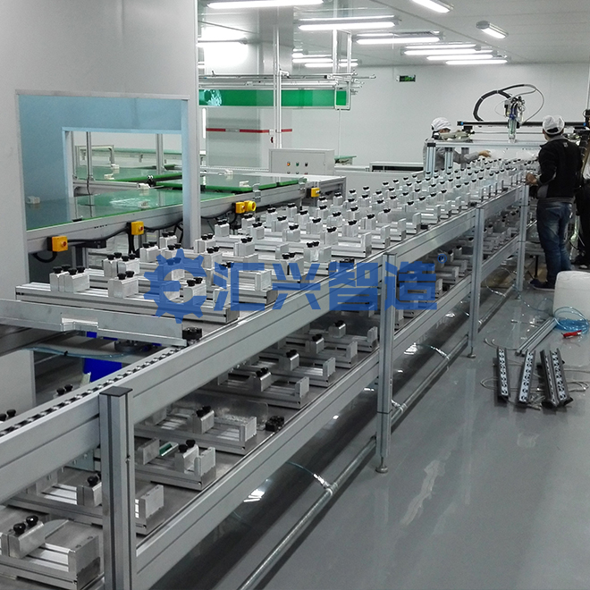 整燈裝配線主要是由輸送帶上料組裝和裝配機(jī)完成剪線、彎線、上鋁鉚釘、功率檢測(cè)、壓針、點(diǎn)膠、扣泡殼等工序,全線只需操作工人2名,半成品上料1名,可替代手工組裝6人的同等產(chǎn)能,工藝品質(zhì)穩(wěn)定。整線造價(jià)經(jīng)濟(jì)適用占地空間小,針對(duì)小批量的產(chǎn)品可選擇性使用部分自動(dòng)化功能,整線留有自動(dòng)化端口后續(xù)可升級(jí)如自動(dòng)連接老化線。