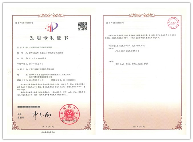 隨著科技進(jìn)步與技術(shù)創(chuàng)新不斷發(fā)展,自主知識(shí)產(chǎn)權(quán)儲(chǔ)備,尤其是創(chuàng)造性較高的發(fā)明專(zhuān)利已成為企業(yè)發(fā)展的核心競(jìng)爭(zhēng)力。近日,廣東匯興精工智造股份有限公司(股票代碼:839258)又新增一項(xiàng)發(fā)明專(zhuān)利——《一種陶瓷馬桶自動(dòng)存胚輸送線(xiàn)》。