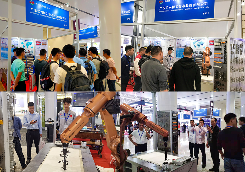 匯興智造在此次大灣區工業博覽會上全方位展示了智能自動化系統的技術成果,包括自動化輸送設備等線體、書法機器人、最新工業配件產品(工業鋁型材、輥筒、工裝板、精益管等配件)等,助力大灣區智造業的轉型升級。