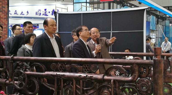 14時許 東莞市市長梁維東和市委常委、宣傳部部長楊曉棠參觀德國館