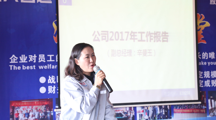 匯興智造副總經(jīng)理辛曼玉以一句“2017,您幸福嗎?”開啟大會的第六項議程,作2017年年度工作報告。辛副總說:“在2017年,匯興智造實現(xiàn)了16年來都沒有實現(xiàn)的銷售業(yè)績;成立了研究院、技術(shù)研究中心等研發(fā)機構(gòu),公司的研發(fā)能力得到提高;調(diào)整了產(chǎn)品結(jié)構(gòu),拓展了行業(yè)范圍,并且守護住了傳統(tǒng)行業(yè),夯實了業(yè)績;實現(xiàn)了配件事業(yè)的業(yè)績倍增,取得喜人成績;加強了人力資源建設(shè),老員工在進(jìn)步,能力在提升,而高學(xué)歷、高層次員工的加盟,讓匯興智造如虎添翼。這一年,雖然我們經(jīng)歷了困難、挫折,但取得的成績是驕人的。匯興智造在往前走,往上走,我們在上坡的過程中,會氣喘,會腿酸,很累,但當(dāng)我們爬上山頂?shù)臅r候,那種‘會當(dāng)凌絕頂,一覽眾山小’的豪情和喜悅卻是無法比擬的。所以,如果有人問:2017,您幸福嗎?我會回答:我很幸福!”