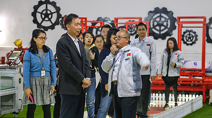 在廣東省科技工作者服務(wù)中心主任廖仕明的帶隊下,13名科技工作者迎著早春的暖陽來到匯興智造。在感受匯興智造企業(yè)文化的過程中,廖主任一行對匯興智造多年來積極倡導的“用情做人、用心做事”的企業(yè)精神,身體力行的“孝道(孝敬父母)、商道(感恩客戶)、人道(提升自我)”的行為準則,無處不在的精益求精的做事細節(jié),以及“隨機應變、順其智然、精工匠心、機智未來”的工業(yè)文明理念表示深深的震撼。廖主任表示,本次到訪匯興智造學習交流,對于匯興智造企業(yè)文化深有感觸,匯興智造除了是一個發(fā)展穩(wěn)健的企業(yè)外,更是一個受人尊敬的企業(yè)。