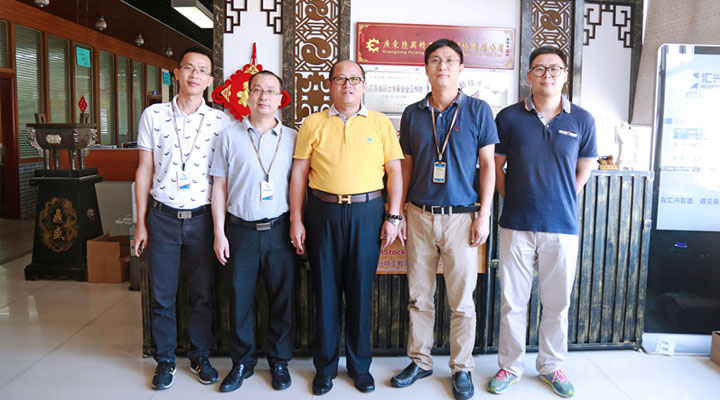 2017年6月28日,東莞市大嶺山鎮(zhèn)工商局王毅局長(zhǎng)、袁洪副局長(zhǎng)、張股長(zhǎng)和鐘股長(zhǎng)一行蒞臨廣東匯興精工智造股份有限公司(股票代碼:839258)調(diào)研指導(dǎo)。匯興智造董事長(zhǎng)鐘輝對(duì)大嶺山鎮(zhèn)領(lǐng)導(dǎo)的到來表示熱烈的歡迎,并陪同他們參觀了匯興智造獨(dú)具特色且富有濃郁文化氣息的工業(yè)4.0智能裝備體驗(yàn)館,隨后雙方就公司的發(fā)展情況等問題展開了深入的交流和探討。