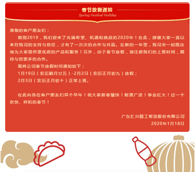 匯興智造丨春節放假通知!