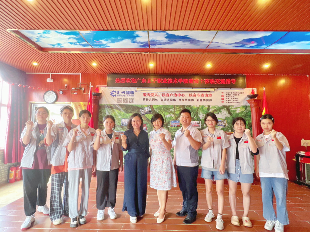 為更好了解學生崗位實習情況,深化校企產教融合,加強校企合作人才培養模式改革。近日,廣東女子職業技術學院謝博士親臨匯興智造看望參加工