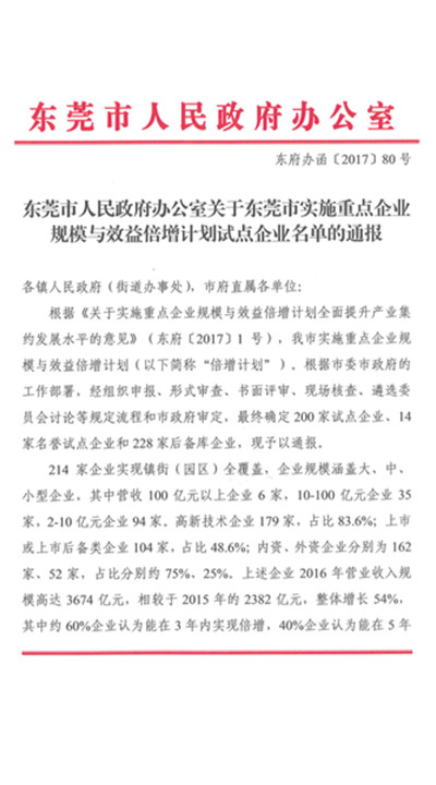 根據《關于實施重點企業規模與效益倍增計劃 全面提升產業集約發展水平的意見》(東府〔2017〕1號),以及《關于......