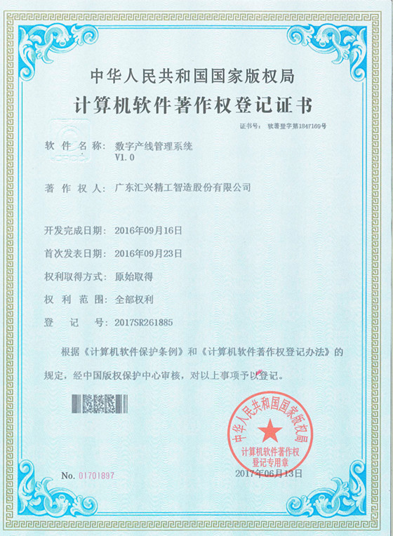 實力鑄造輝煌:匯興智造榮獲五項計算機軟件著作權 2020-01-06