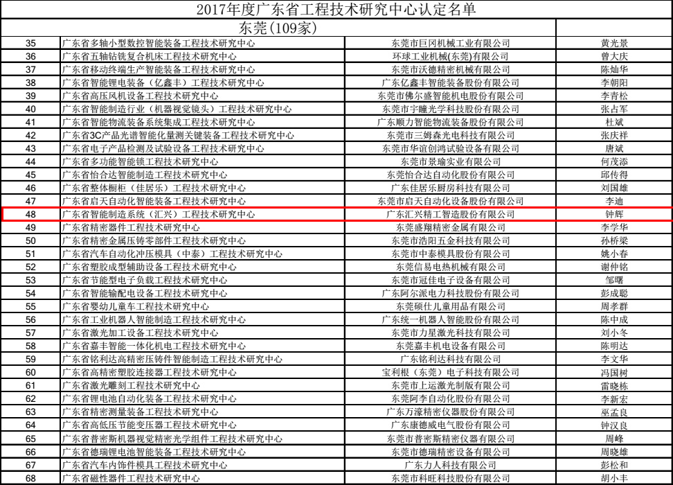 2017年9月25日,匯興智造設立的 “廣東省智能制造系統(匯興)工程技術研究中心”被廣東省科技廳認定為“2017年......